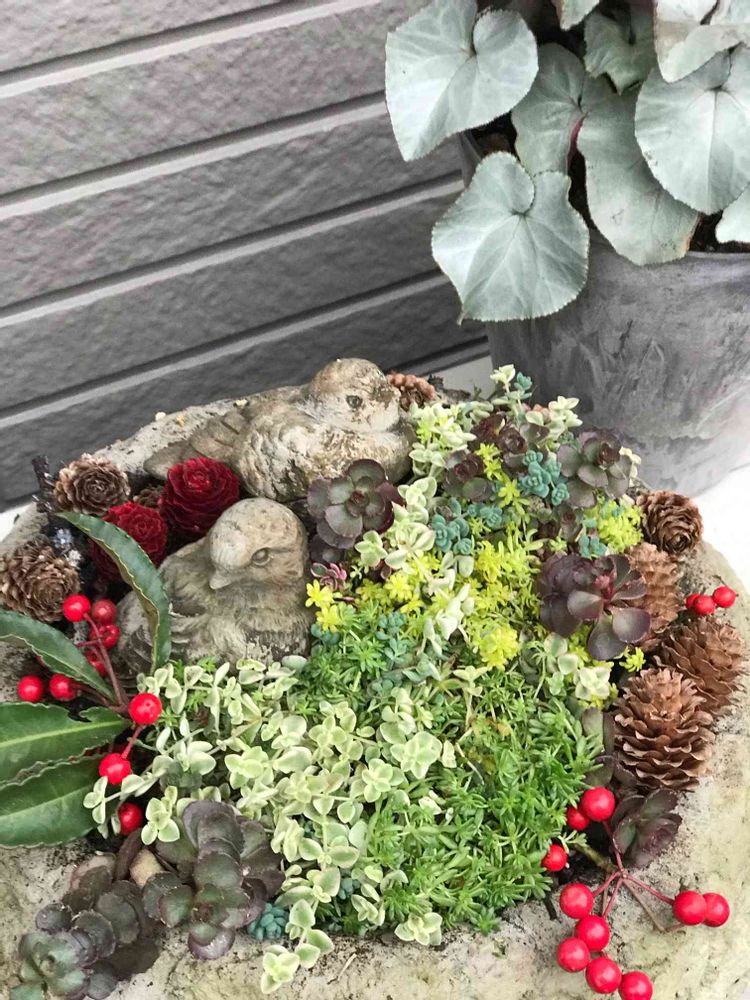 セダムもりもりで鳥さんたちが暖かそうに見えます✨😊