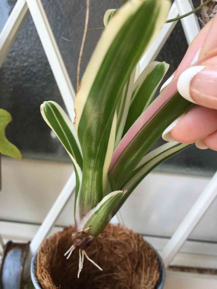 ネオレゲリア、ファイヤーボールの子株から根っこが出てきました❣️