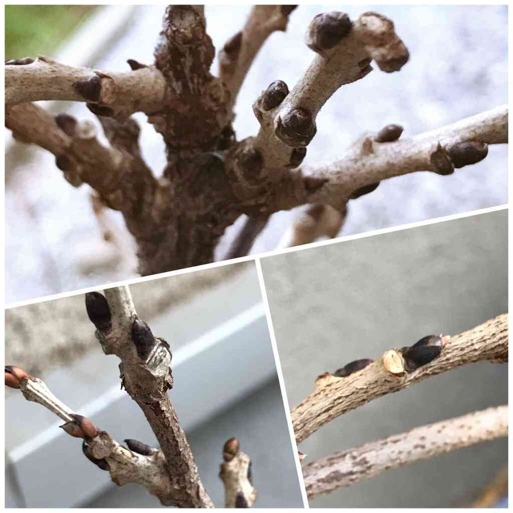 そろそろ花芽も分かる頃かしら、と見てみたけれど花芽なのか葉芽なのかがまだ判別がつきません。
