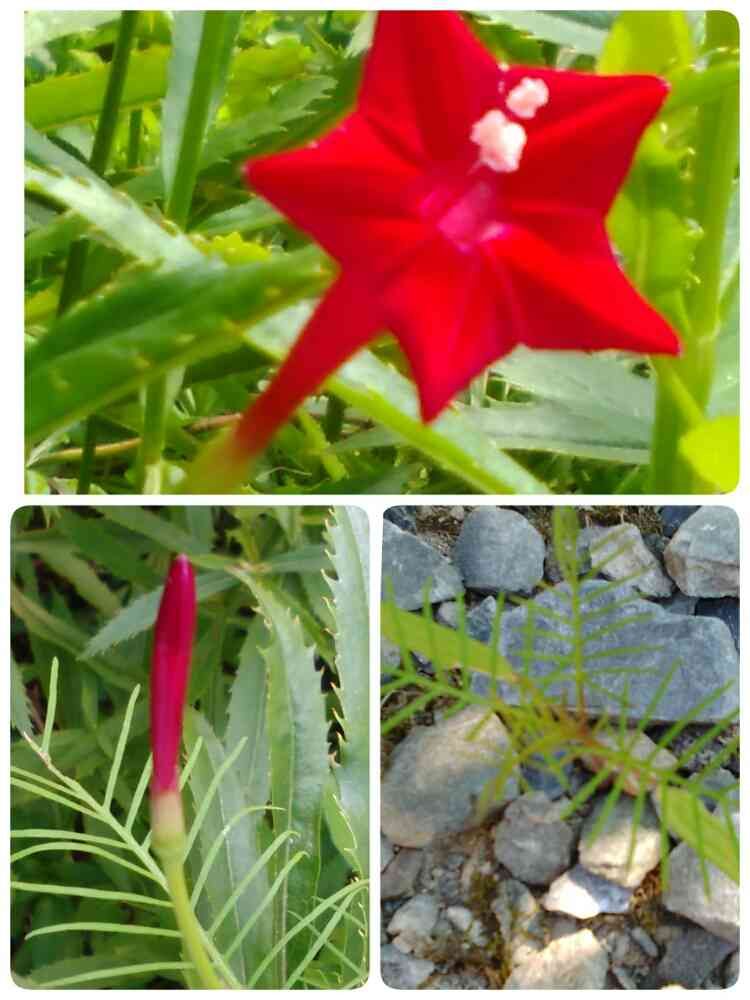 筒状の蕾 1㎝程の星形の真っ赤なルコウ草🎵