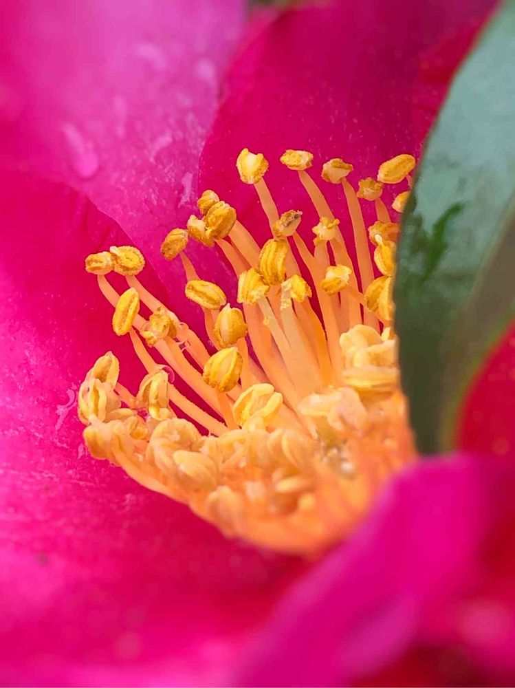 花びらのピンクと、花芯の黄色が鮮やかでした。
