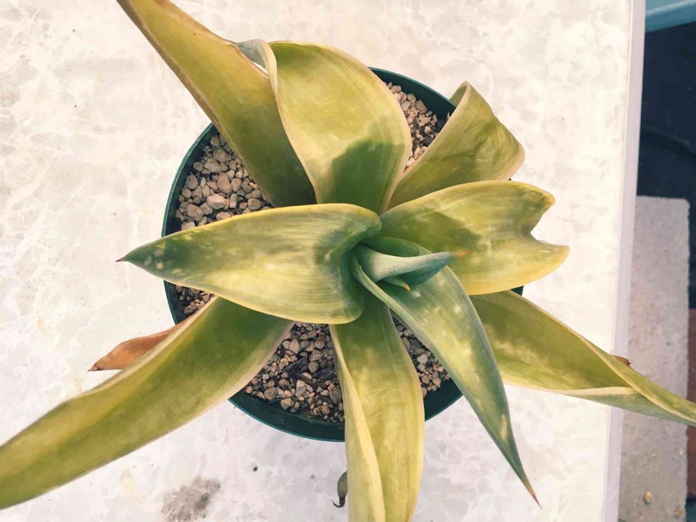 アオノリュウゼツラン。試しに株分けした子株の一つを屋根のないところに置いてたら霜に当たって枯れてしまった。よく見る地植えの大株のとは品種が違うのかなぁ?色がもっと青い気がするし。