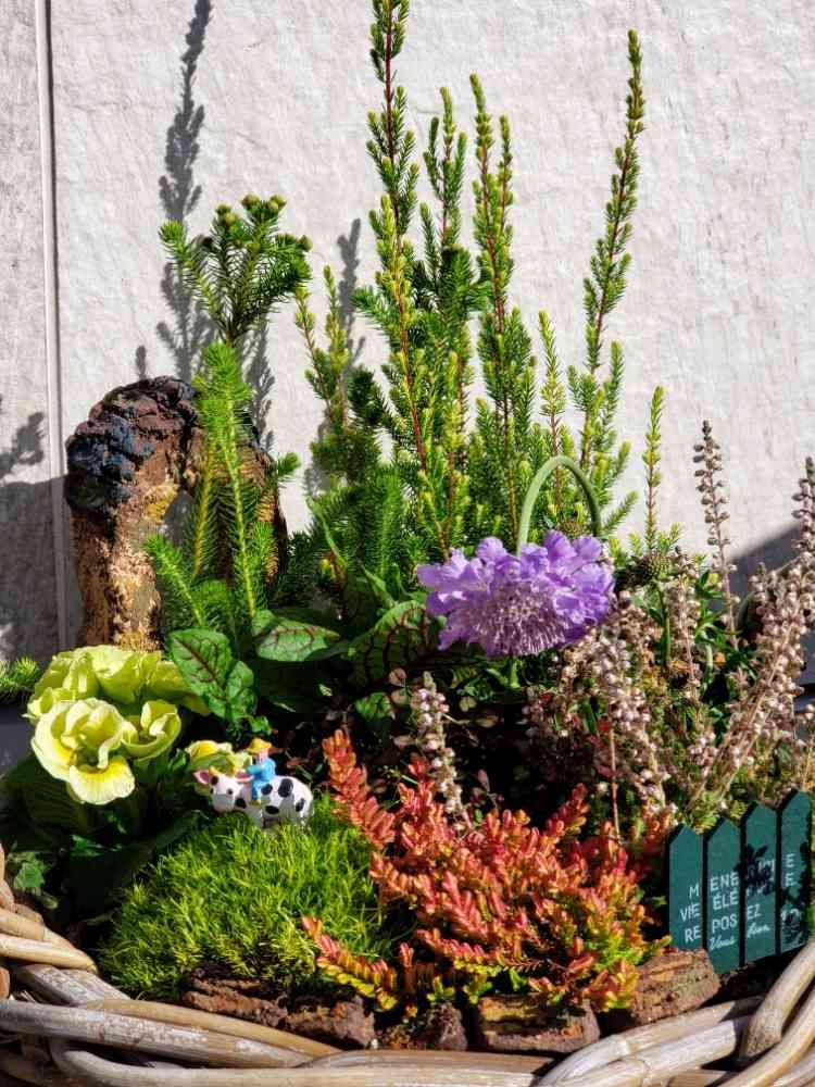 [@id:517112] スカビオサの代わりに小花も考えたけど、それだとポイントがなくて、つまんなかったから、スカビオサにした❕😁モッサリなってほしくなかったから、カット✂️でサイズ感調整出来る植物ばかりをチョイス💡チマチマ弄って暇潰しの相手になってもらう(*´艸`*)🐄さんの仲間も、もっと、ほしーな🎵