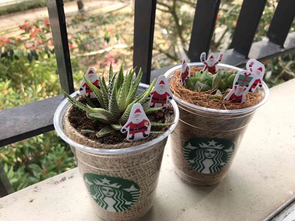 スタバカップに寄せ植えです😁