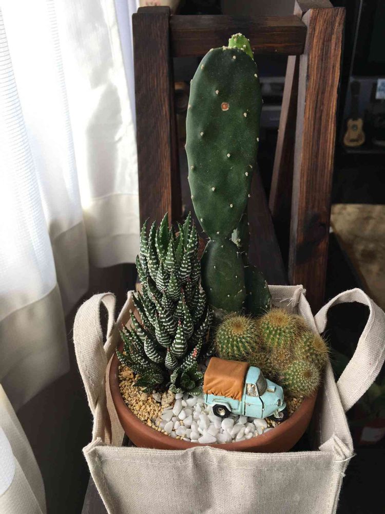 最近見かける、サボテンくんとか多肉ちゃんをガッチガチに固めて寄せ植えしてるヤツ。