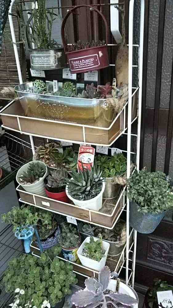 外組、頂き物の棚に、寄せ植えしたのが3つ、詰め詰め何とかコンパクトに。
