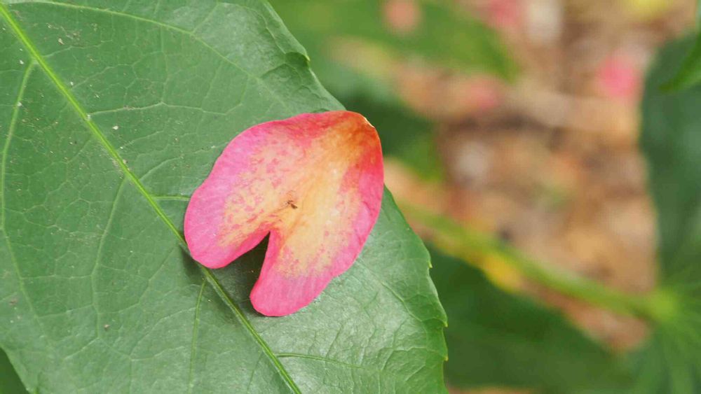 ヤツデの葉っぱに サザンカの花びら