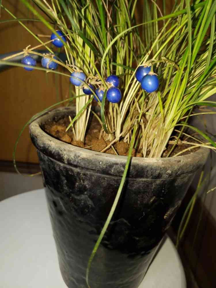 12月16日茨城県へ自然薯掘りに行った時に林の中で見つけたジャノヒゲ、綺麗な瑠璃色の実が付いていました。勝手に森からの贈り物として頂いてきました。