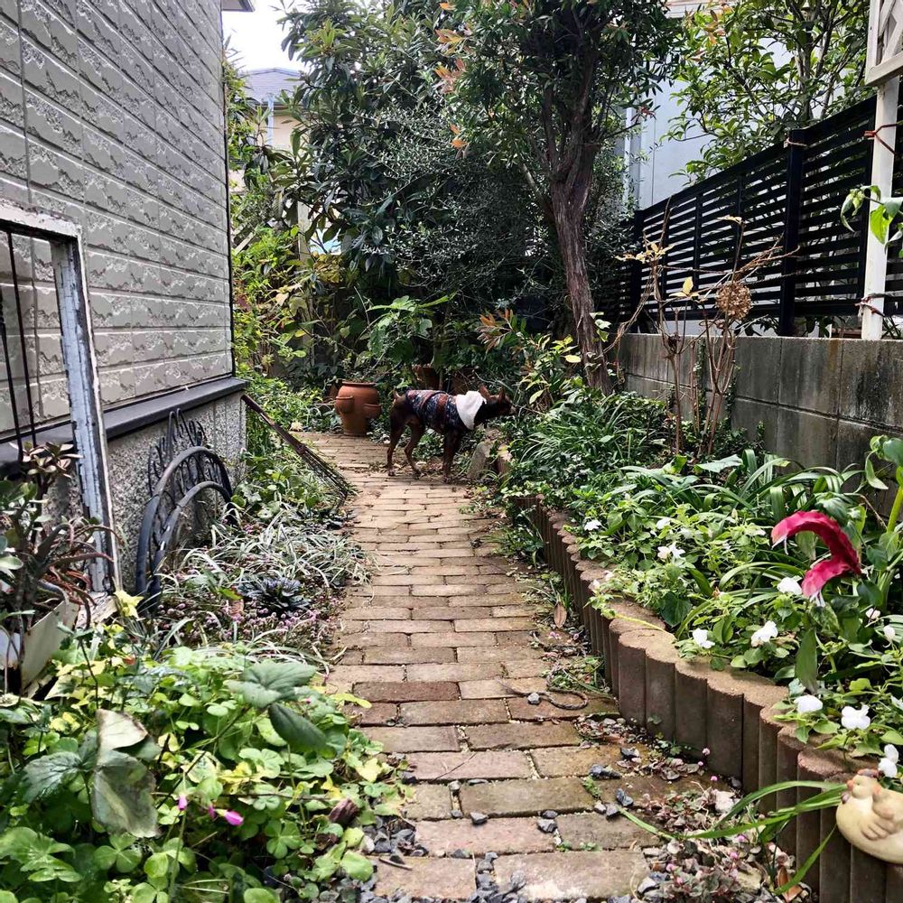 近頃猫ちゃんが頻繁に花壇に入って、縄張り争いしてるみたいです。。。チャッピー君パトロールは助かります🐕