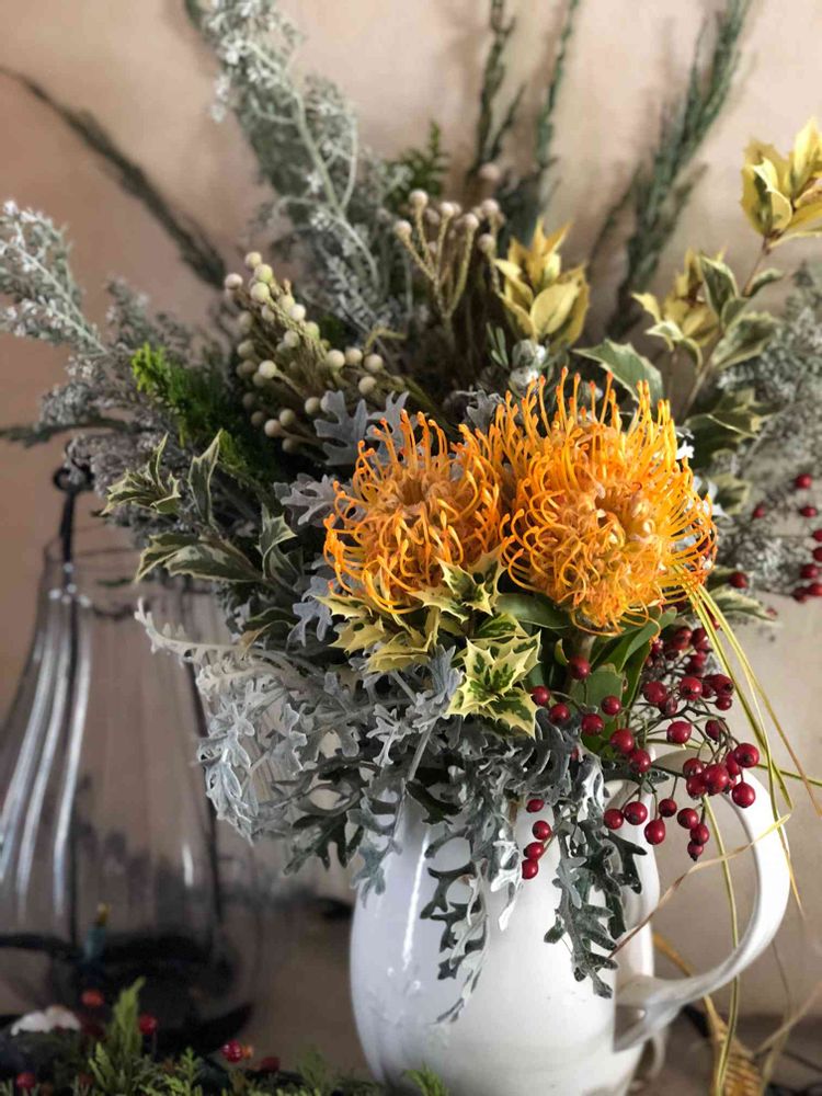 バンクシアと少しの実ものをもらったので、庭にあるリーフを合わせてみました😊