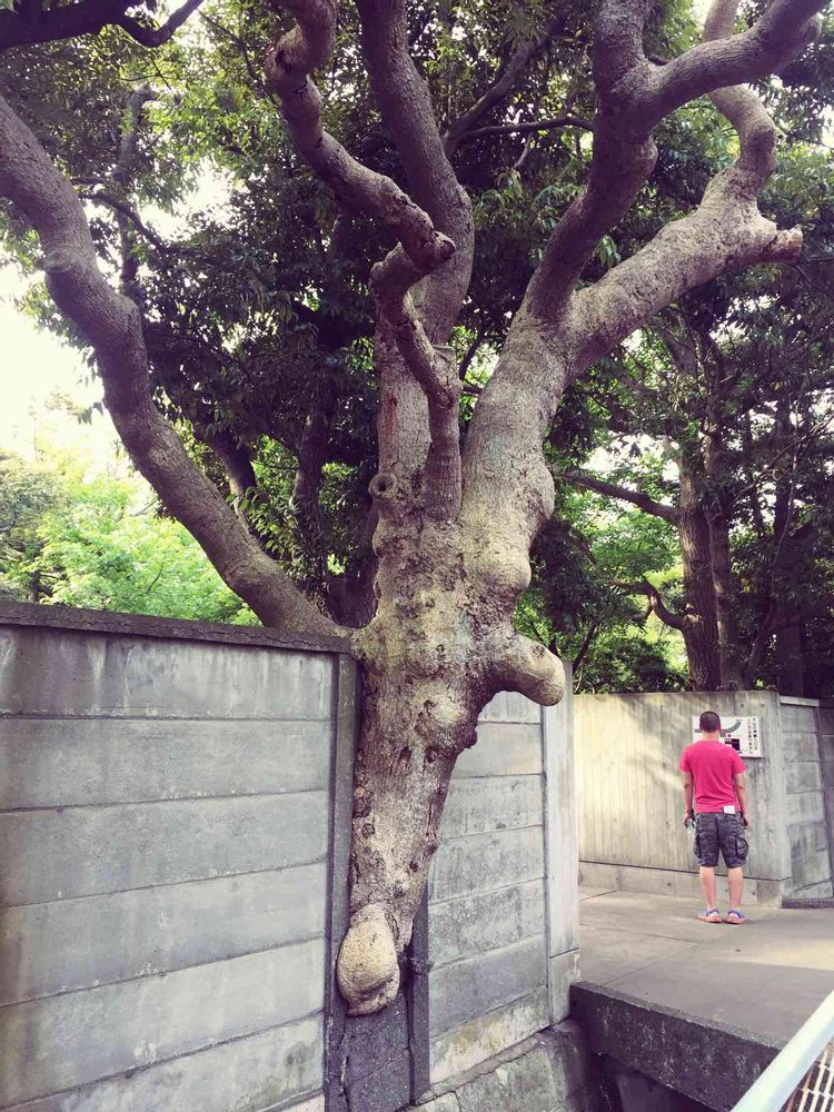 去年鎌倉行った時に、はみ出し方が凄い木がありました。