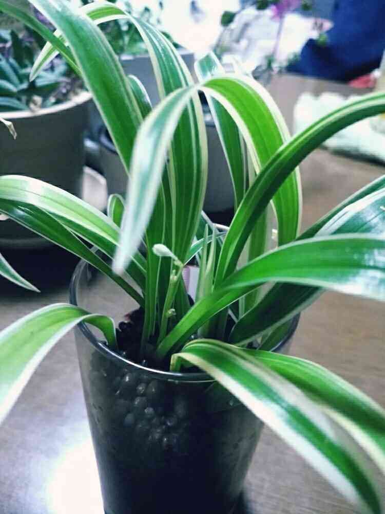 シャムオリヅルランは普通のオリヅルラン(名前は分からないですが一般的なもの)に比べ、葉が柔らかく繊細な感じがします。私のはこの秋にお迎えしたのですが、葉先が少し茶色になってしまいました。😭水不足だったのでしょうか。中心部分は元気そうなので大丈夫だと思うので水やりして「また綺麗な葉を見せてね」と、声をかけています。😃