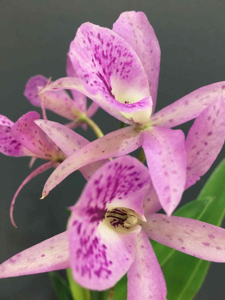 4つ蕾が付いていてゲットしたブラソカトレアが満開になりました!花弁がキラキラ光沢があり、とても綺麗です。もう3号鉢からパンパンに根が張っているので、春に植え替え予定です。