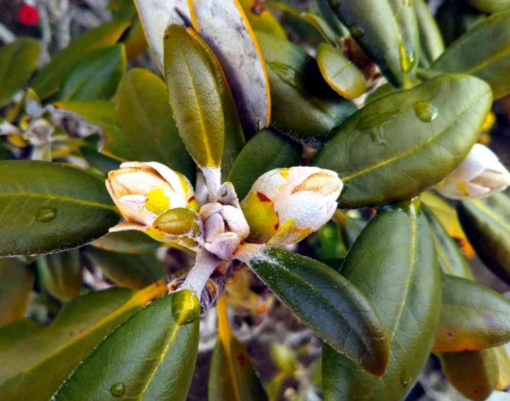 日本シャクナゲ(白の方)は葉の裏が茶色(黄色)なので見た目、弱ってるように見えるかも😅