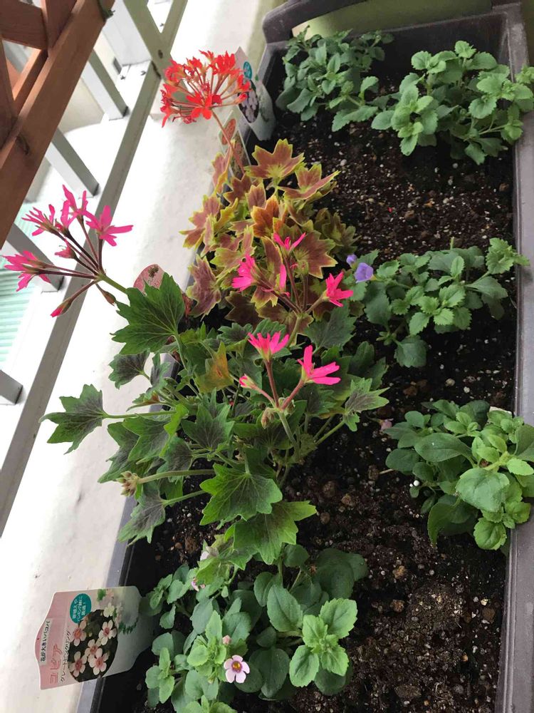 バルコニー/ベランダ,もみじ葉ゼラニウム,バコパ・コピアの投稿画像