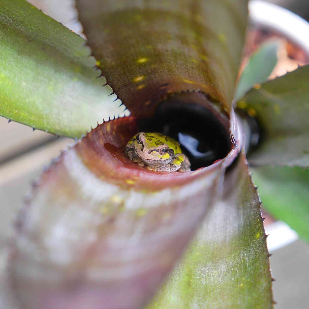ホントはビルベルギアの模様にピント合わせたかったけど、カエルにビシッときてしまいました(^.^