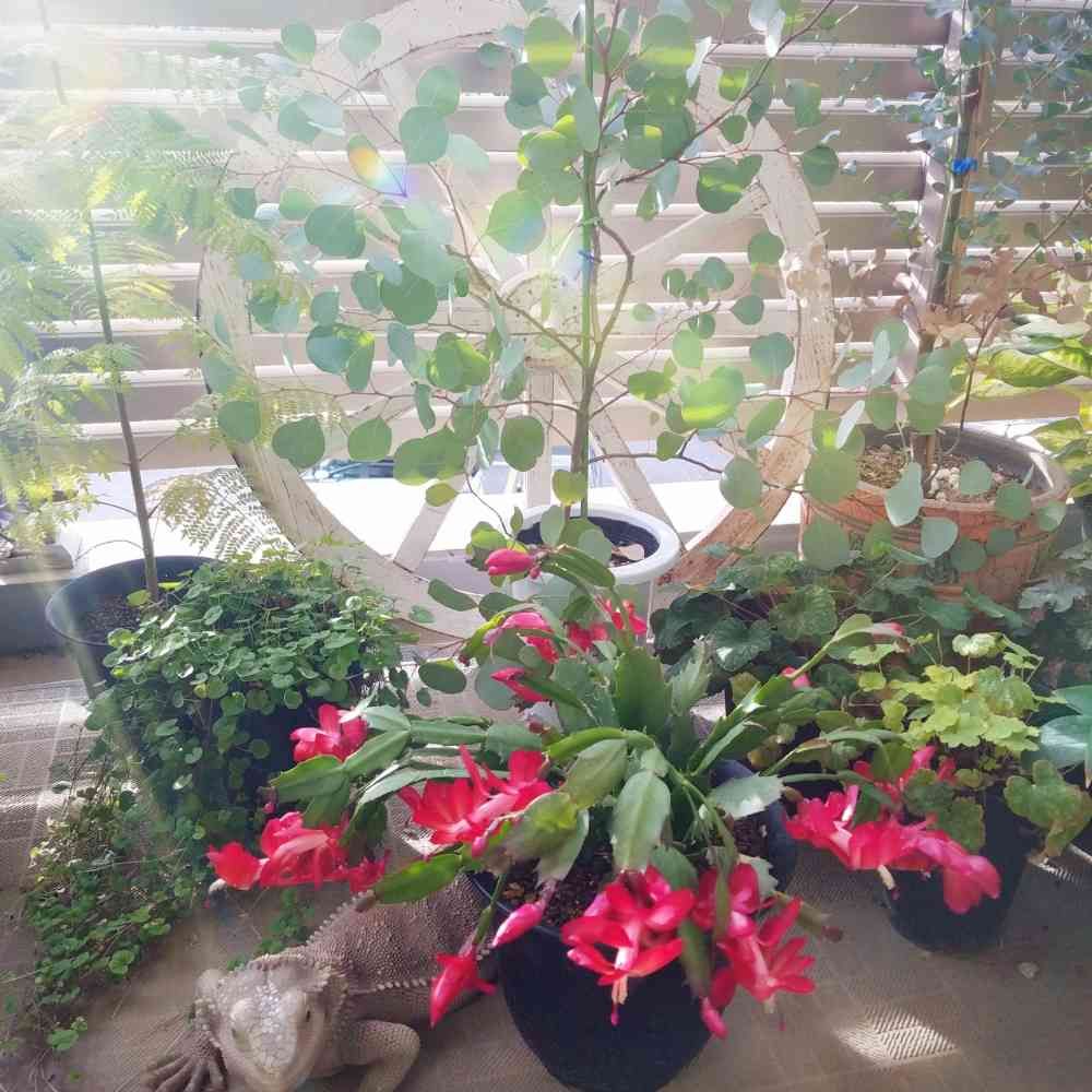 バルコニー/ベランダ,シャコバサボテン,ユーカリ ポポラスの投稿画像