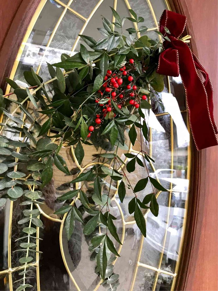 ユーカリが思いのほか、ごつくて結ぶだけにしちゃいました。いただいた南天に助けられた感じです。ありがとうございます。上ちゃんも素敵なクリスマスをお迎え下さいね。😃🎶🎄