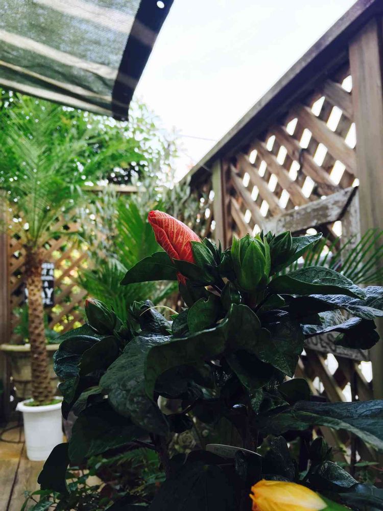 ハイビスカスは2個目です。1個目は黄色だったので、今度は真っ赤❗️