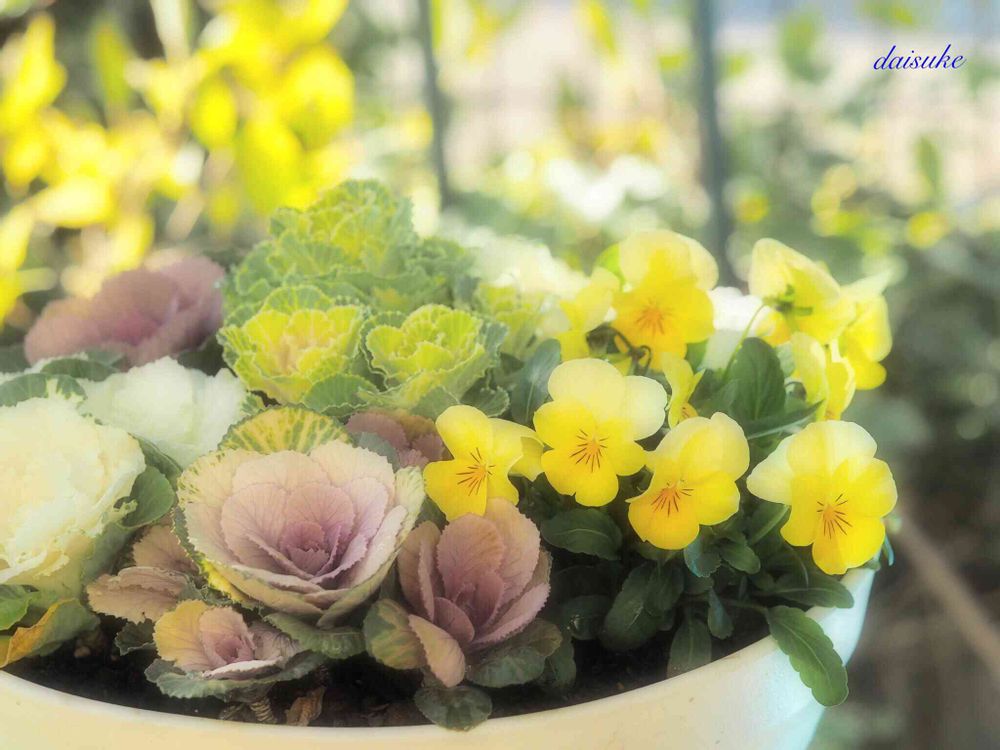 だいすけさんのビオラ,葉牡丹フレアホワイト,モカ色葉牡丹 萌花セッションの投稿画像