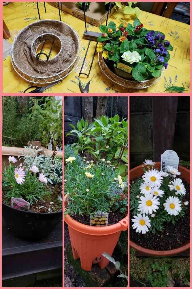 下段の3枚は、妻と一緒に、寄せ植えしたもので、枯れたところに3種のマーガレットを植え込みました。