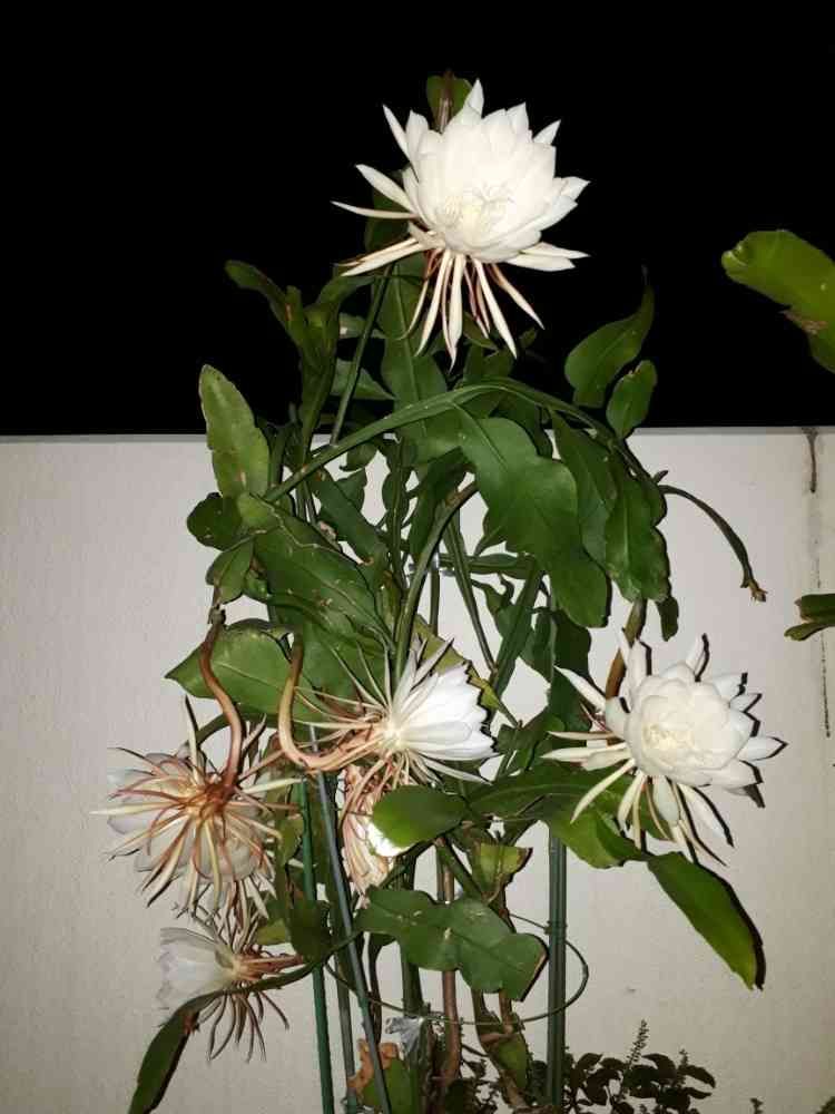 私は白い花が好きで色々植えてみました、雪柳、白沈丁花、白馬酔木、山法師、沙羅双樹と言う夏椿など、30年経って残っているのが月下美人だけなんです。前の家からなので33年程、増え過ぎて冬越しに室内で管理するのが大変⁉️です。
