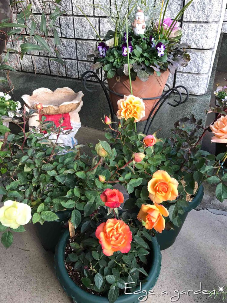ミニ薔薇3鉢 こんなにも咲いてくれてます💗