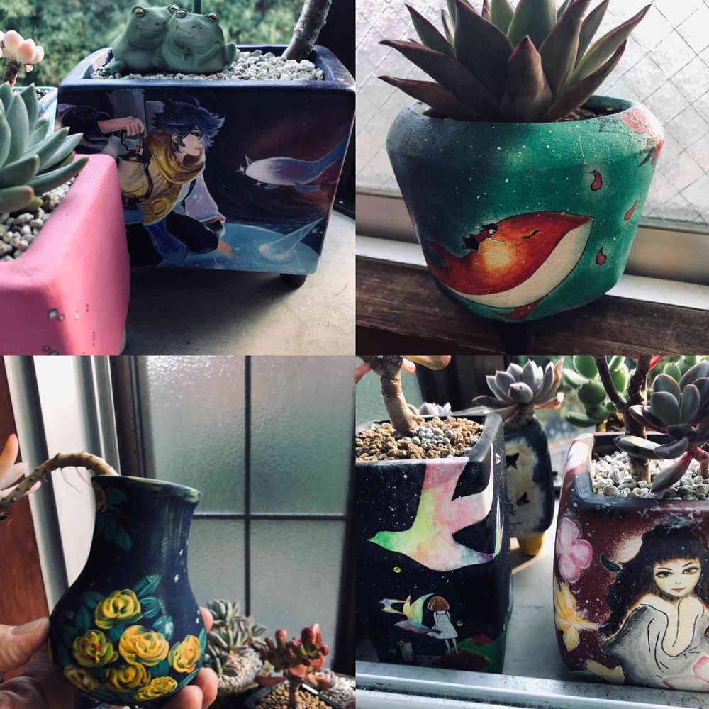 手書きのリメ鉢憧れます💕
