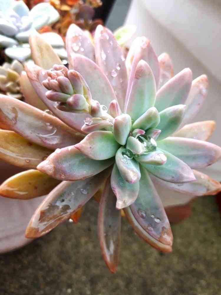 うち雨ざらしやけん、葉がポロポロ落ちるんよ。だから勝手に葉挿しで増えるんやー。