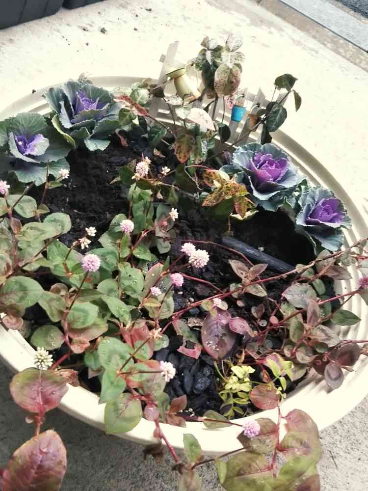 寄せ植えに葉牡丹とシルバーリーフ足そうとしたらシルバーリーフが入り切らんかった💦