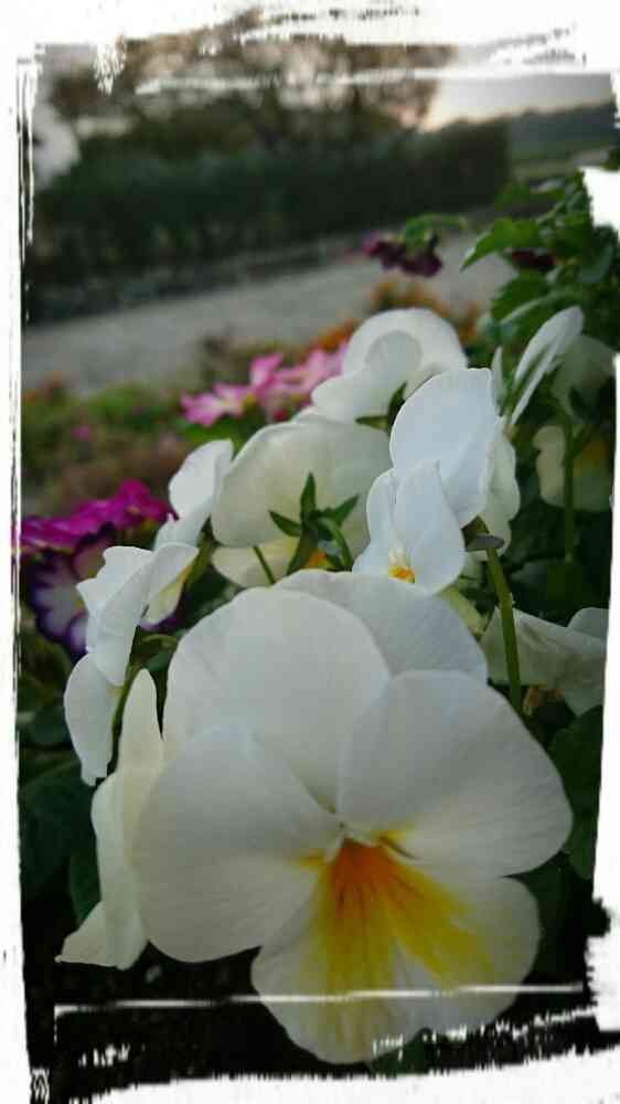 ミッチーさんの玄関,夕陽,ビオラの季節の投稿画像