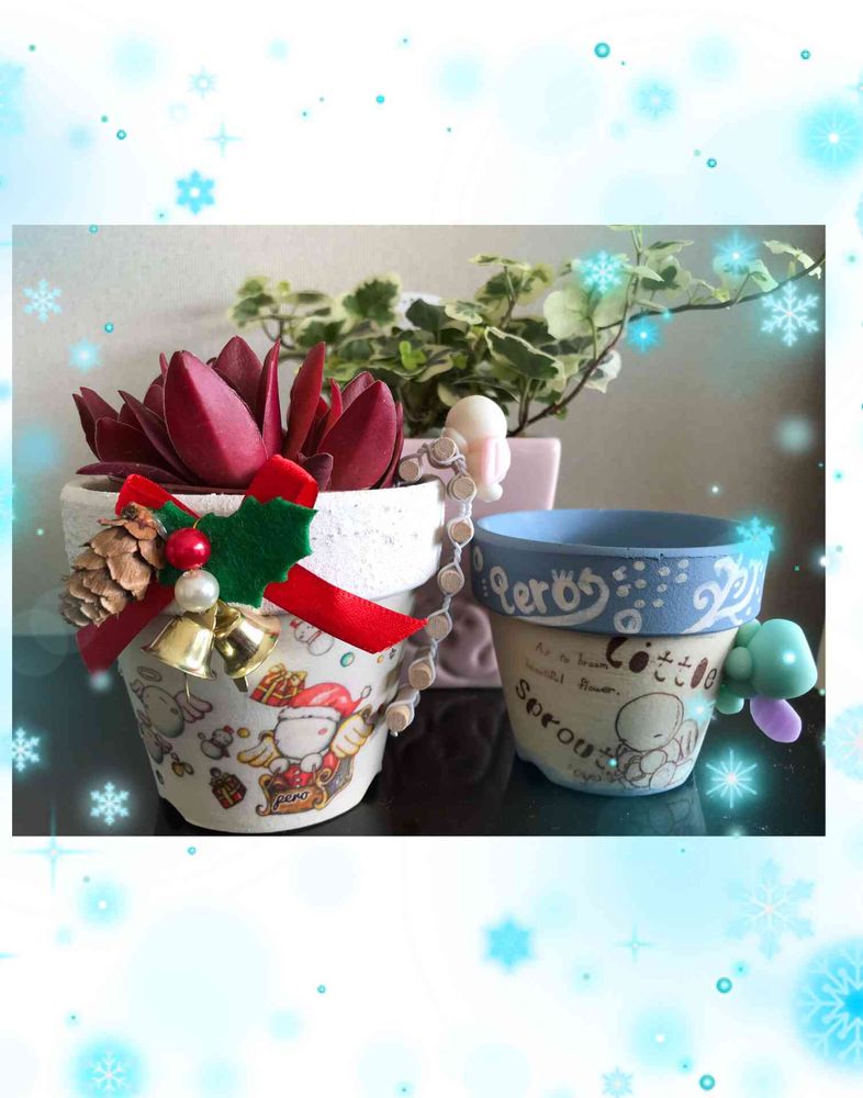なんて可愛い😍クリスマス🎄リメ鉢と赤い多肉ちゃん💕何回見ても、かわいい〜😊
