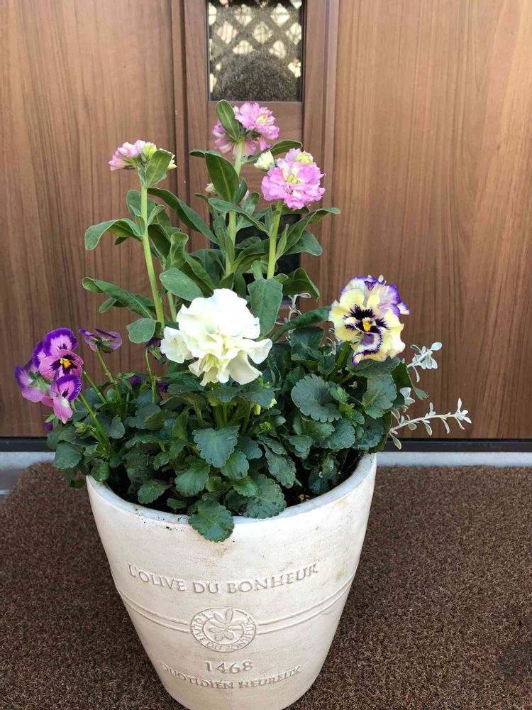昨日は夕方にお花を見に行って急いでたので植木鉢だけ値段をチェックしてお花はポイポイカゴの中へ〜少々お高めの春の寄せ植えになってしまいました💦💦