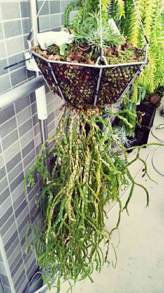 長さも1mはあります。新芽が出にくく、成長も遅いので維持にすごく気を使います。鉢の上は寂しいのでエアープランツの育成所になっています❗