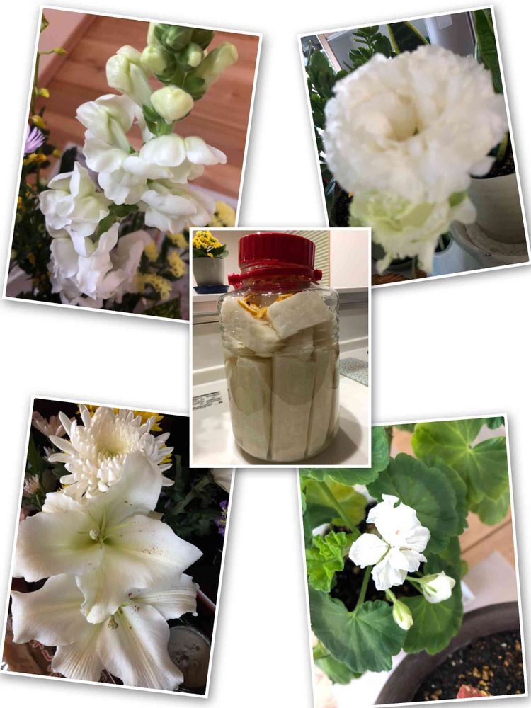 白いお花と美味しそうな大根の酢漬け、ありがとうね🤗