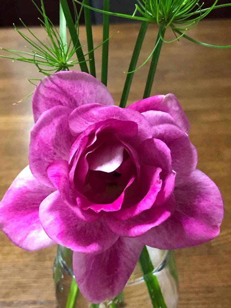 蕾を切って部屋の中に飾っていたら、やっと綺麗に咲きました🤗