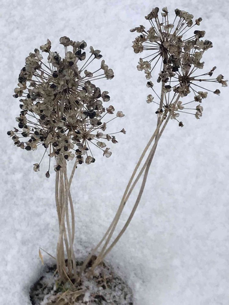 自然に生えたニラ❗️タネがまだ付いてますが間もなく雪に覆われます。☃️😅