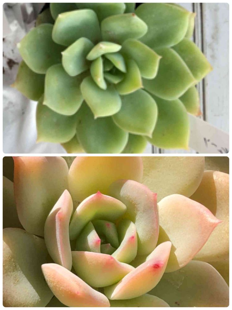 グリーンから 少しずつ色が変わり、葉の先がピンクに紅葉。グリーンの方が好みだけど、これはこれで綺麗。