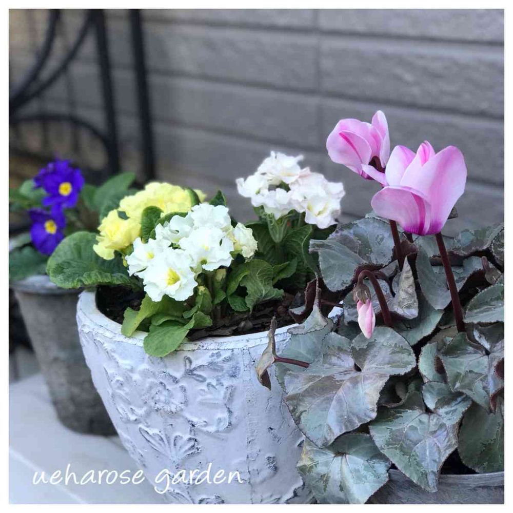 GSのお写真で気になっていたプリムラ ジュリアンをお迎えしました💕こちらも初めて育てるお花!フリル咲き三色を寄せてみました。