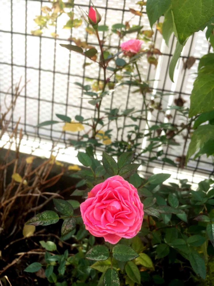 ずっと放置してた庭に出たらミニバラだけ綺麗に咲いてました🌸