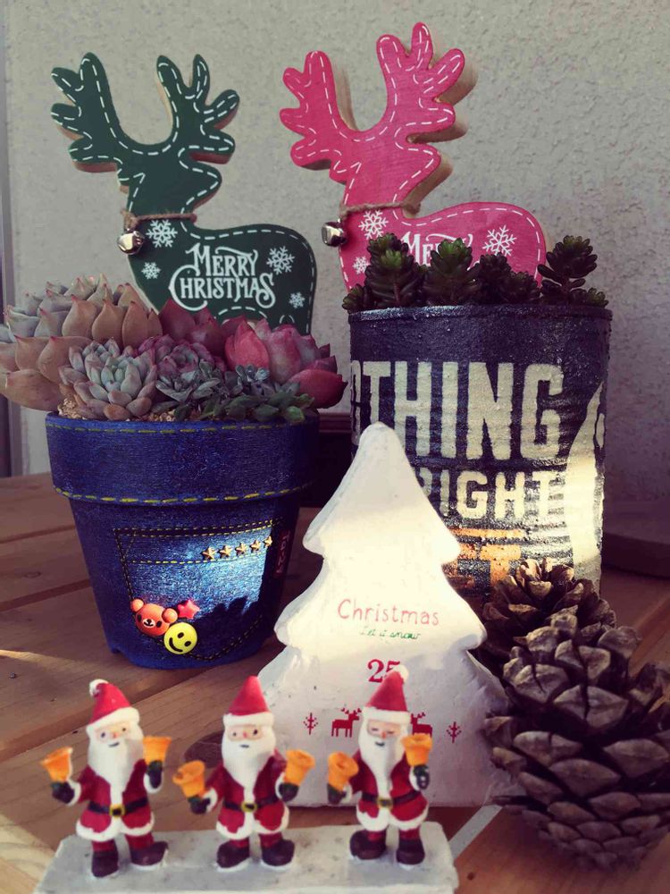 ニーナチャンの鉢にトナカイ可愛いねぇ❀.(*´▽`*)❀.