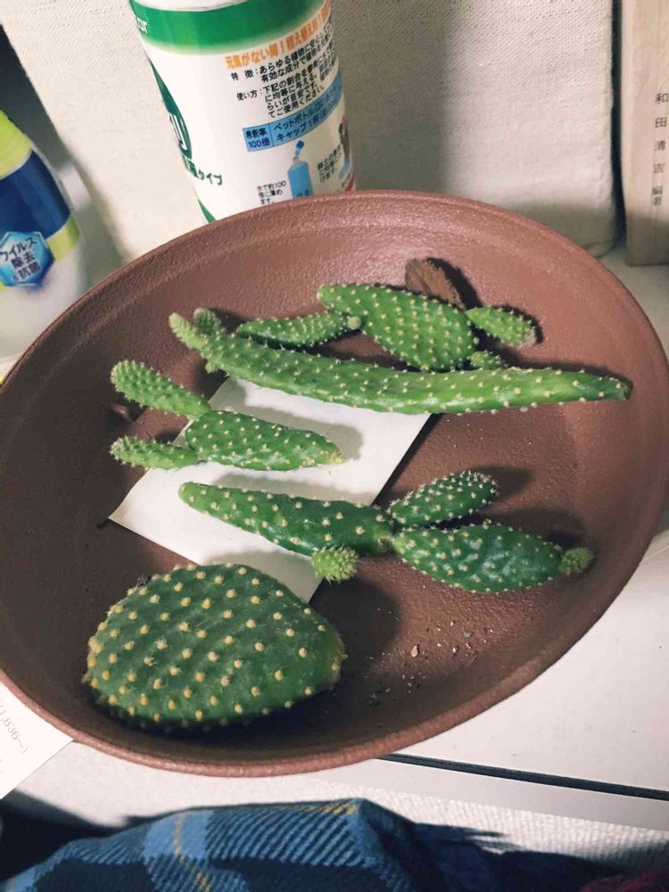 全滅は避けたいので上に生えてるウチワサボテンをぽきっとして来週の休みに植える。
