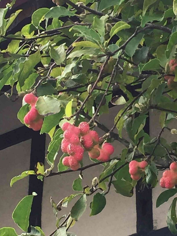 私も昨日公園で見たんだけど、ちょっと気持ち悪くて撮らなかったんだよ〜こんなにピンク色にもなってなくて緑の実が溶けてくっついたみたいになってた!偶然でビックリ😆