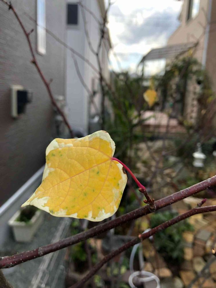 数日前まで緑色のまま、僅かに残っていた葉っぱが紅葉しました。
