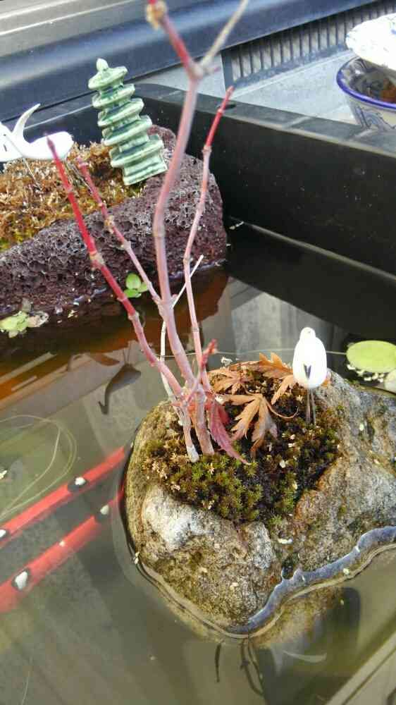 苔と共に、石に植え込まれた小さい紅葉も落葉しました。