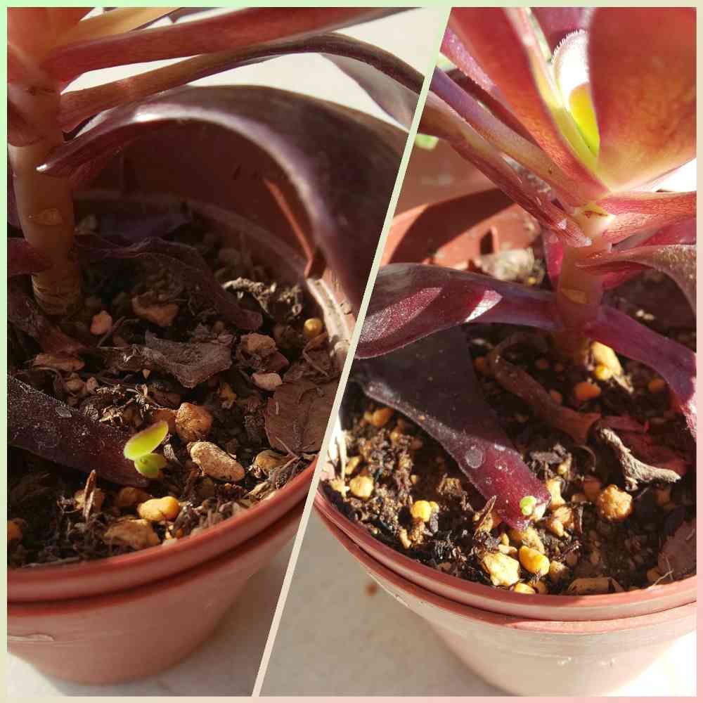 葉挿しは成功率が低いみたいですが、勝手に落ちた🌱をそのままにしていたらbabyちゃん🌱が出てきてました🤗💕