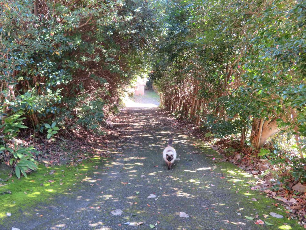 木漏れ日のトンネルとタヌキの様な猫ちゃんが印象的❣️