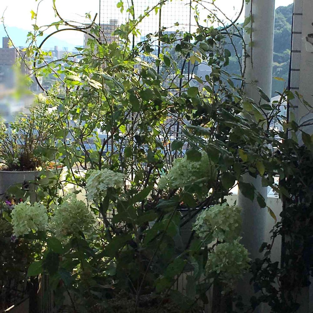 バルコニー/ベランダ,アイビー(ヘデラ),ピラミッドアジサイの投稿画像
