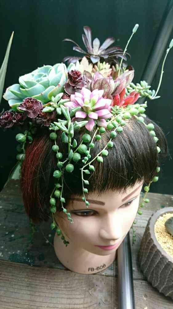 多肉の髪飾り‼️すご~い❣️