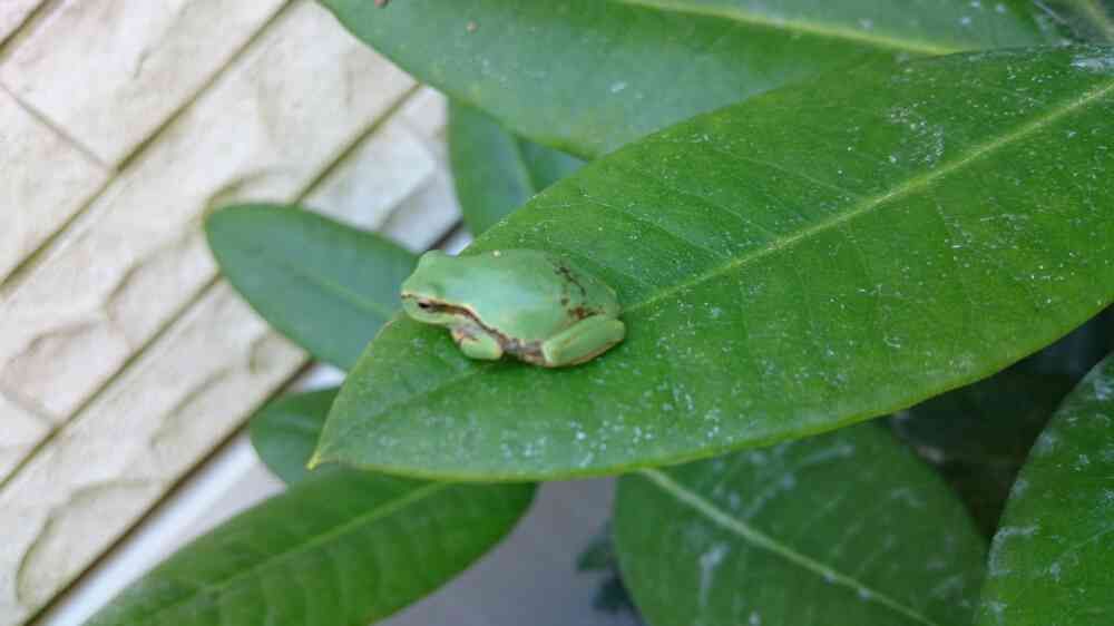 カエルさんも暑くて裏庭にいる😆